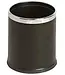 Dubbelwandige ronde papierbak aan de buitenzijde van staal met lederlook en mat RVS rand. Stalen binnenzijde zwart gepoedercoat.