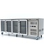 De grootste koelwerkbank in het assortiment van Maxima is deze werkbank met maar liefst vier deuren en een afsluitbare compressorruimte. De koelwerkbank is voorzien van zes wielen waarvan de voorste wielen zijn voorzien van een rem. Hiermee kun je de koelwerkbank makkelijk verplaatsen. De vier glazen deuren hebben een stevige handgreep en verwarmde deurrubbers om aanvriezen te voorkomen. De deuren zijn zelfsluitend door middel van magnetische deurafdichtingen. Hierdoor voorkom je dat koude lucht verloren gaat als de deur niet goed afsluit. Ook kun je goed zien waar je wat hebt opgeslagen, zo hoef je niet onnodig deuren te openen. Wanneer je ingrediënten moet bestellen, zie je in één oogopslag wat je voorraad is.