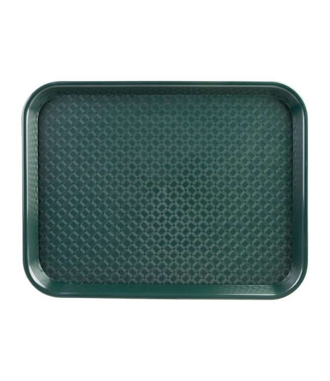 Groen dienblad met gestructureerd oppervlak. Dit verkleint de kans op glijden. Eenvoudig schoon te houden polypropeen. Verkrijgbaar in 3 maten en 6 kleuren.