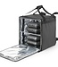 Een zijde van de rugtas kan worden geopend met een ritssluiting voor gemakkelijke toegang.