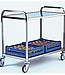 Voorzien van 2 afzetbladen 1110 x 610 mm met waterkering. Tussenafstand bladen 633 mm. Geschikt voor korven tot 510 x 510 mm. Verrijdbaar d.m.v. 4 zwenkwielen Ø 125 mm waarvan 2 met rem en inclusief zwarte stoothoeken.