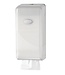 Zeer gebruiksvriendelijke toiletpapierdispenser. Deze dispenser kan altijd tussentijds bijgevuld worden, dus altijd voorraad en non-stop. Vel-voor-vel uitgifte zorgt voor gedoseerd verbruik. Geen afval van losse kokers. Meest hygiënische toiletpapier. Zeer geliefd in bijvoorbeeld hotels.