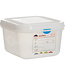 Bewaardoos GN1/6 luchtdicht afsluitbaar door uniek dubbel afsluitsysteem en absoluut smaak- en reukvrij, geschikt voor vriezer -40 °C en magnetron +100 °C (zonder deksel), wordt compleet geleverd met product coderingsset volgens de HACCP normen.