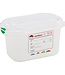 Bewaardoos GN1/9 luchtdicht afsluitbaar door uniek dubbel afsluitsysteem en absoluut smaak- en reukvrij, geschikt voor vriezer -40 °C en magnetron +100 °C (zonder deksel), wordt compleet geleverd met product coderingsset volgens de HACCP normen.