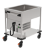 Bain-marie wagen voor transport en verdeling van gerechten binnenshuis van CNS. Naadloos gelaste diepgetrokken geïsoleerde bak. Met aftapkraan. Spiraalkabel 2,5 m, blinde stekkerdoos. Aan-uitschakelaar. Thermostaat traploos regelbaar, +2°C tot +10°C. Veiligheidsduwbeugel. CNS bodemplaat met diepgetrokken waterkering. 4 stoothoeken. Wielen in roestvrije uitvoering conform DIN 18867, deel 8. Wieldiameter 125 mm. 4 zwenkwielen. GS/VDE-gekeurd, spatwaterdicht. Nominale spanning 1N AC 230 V, 50 Hz. Koelmiddel R 134a