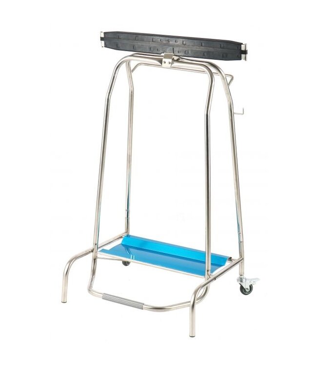 Verrijdbaar door middel van 2 zwenkwielen met rem.